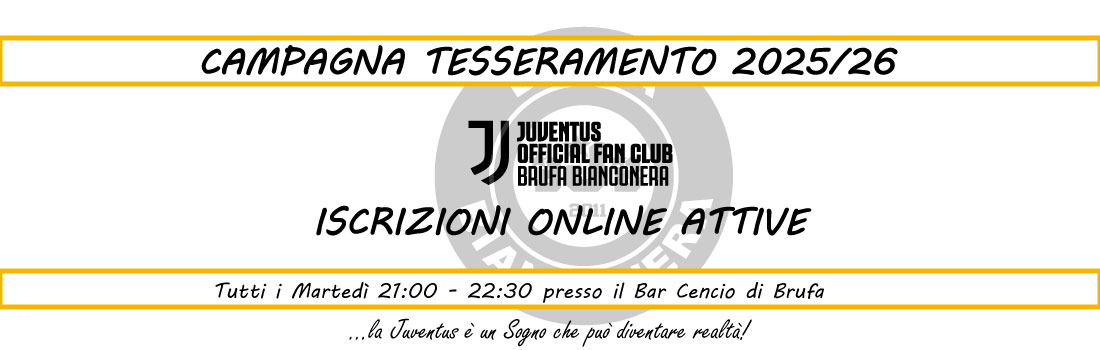 L’iscrizione al Club è una condizione necessaria, ma non sempre sufficiente, per ottenere biglietti per una trasferta. Il Center Juventus, infatti, per ogni partita invia al Club un numero di biglietti che non sempre riesce a soddisfare le numerose richieste. Per questo motivo, l’intero staff del Club Brufa Bianconera, consiglia vivamente la sottoscrizione della JCard, con la quale aumentano le possibilità di ottenere un biglietto.